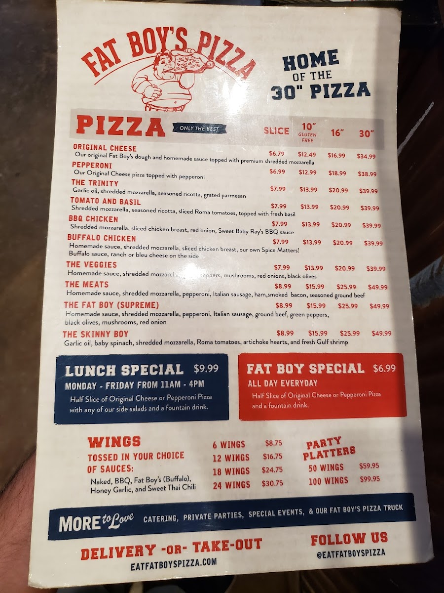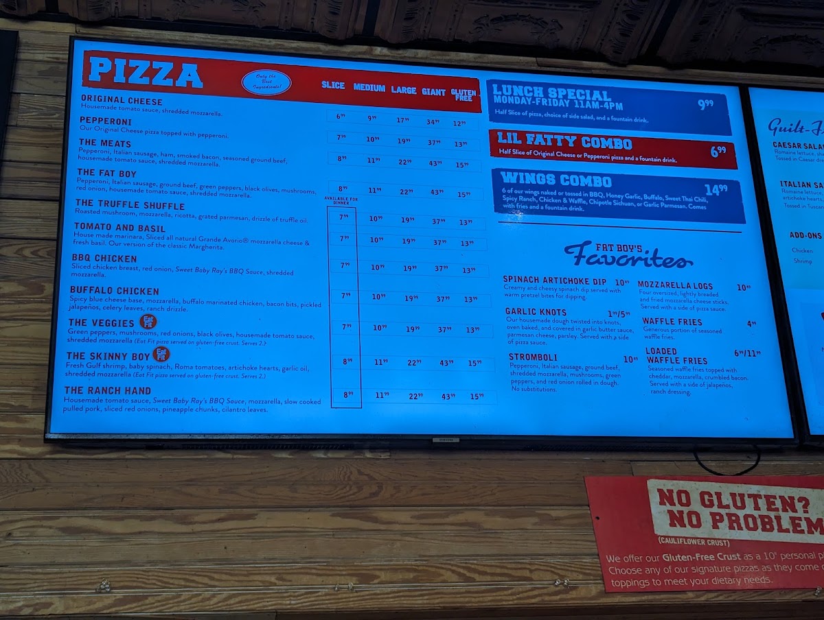 Whether you're here for a birthday celebration or a casual family meal, Fat Boy's Pizza guarantees an unforgettable dining experience!