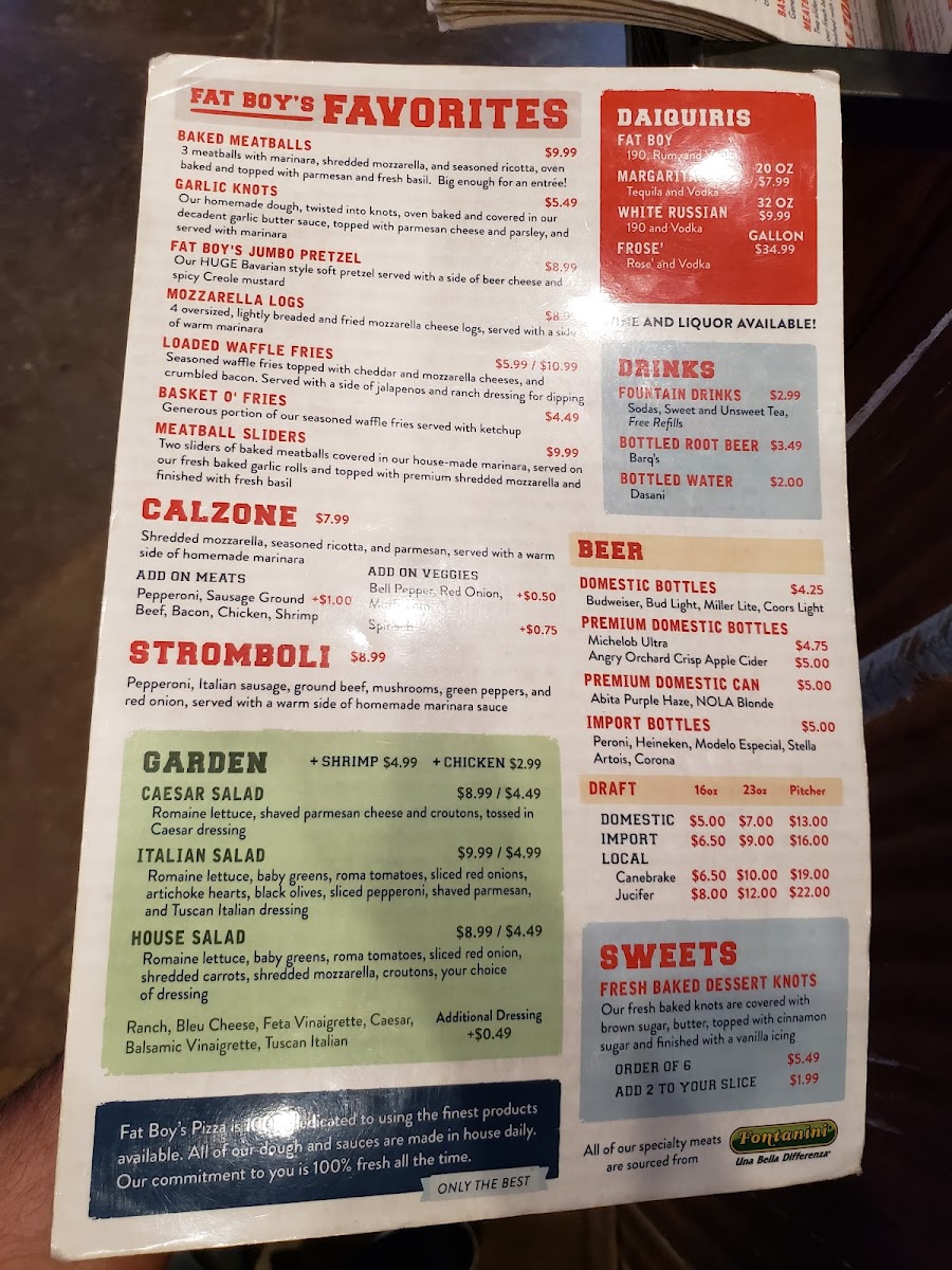 Welcome to Fat Boy's Pizza, a culinary gem located at 69305 LA-21, Covington, LA. Known for its vibrant atmosphere, this restaurant is perfect for family outings or game-day gatherings. The menu offers a plethora of options, from their mammoth pizzas to savory sliders and delectable garlic knots.